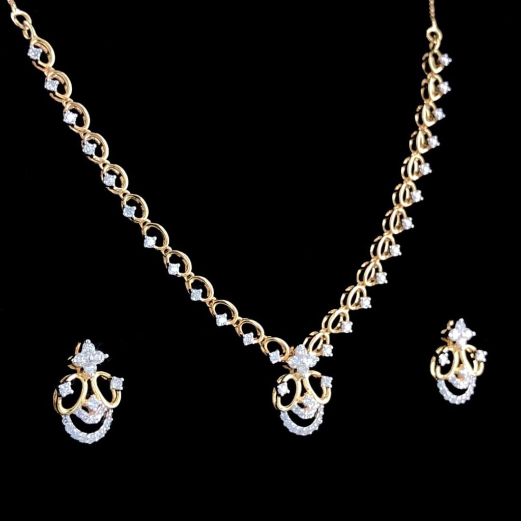 Product Code :B174 Gold :YELLOW GOLD Purity :14KT Gross Weight: 32.800Gms Net Weight:29.776Gms IGI Certified : YES Diamond Weight: 15.12 Colour : JKL Clarity: SI Diamond Pcs : 144