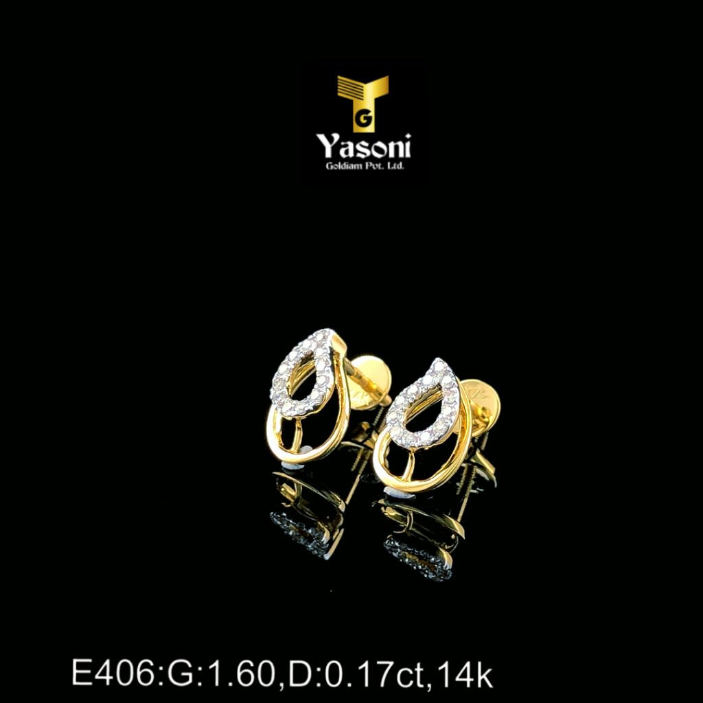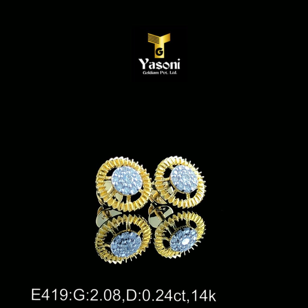Product Details : Product Code : E329 Gold : Yellow Gold Purity : 14 KT Gross Weight: 1.510 Gm Net Weight: 1.460 Gm IGI Certified : YES Diamond Weight: 0.25 Cts Colour : GH Clarity: SI Diamond Pcs : 36