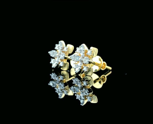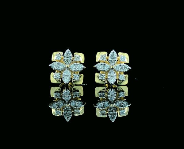 These exquisite ear tops showcase a beautiful floral cluster design crafted in radiant yellow gold. Each piece features an array of sparkling white diamonds, arranged to maximize their brilliance. The intricate detailing and dazzling display of diamonds make this pair a truly captivating accessory, perfect for adding a touch of timeless elegance and glamour to any ensemble.