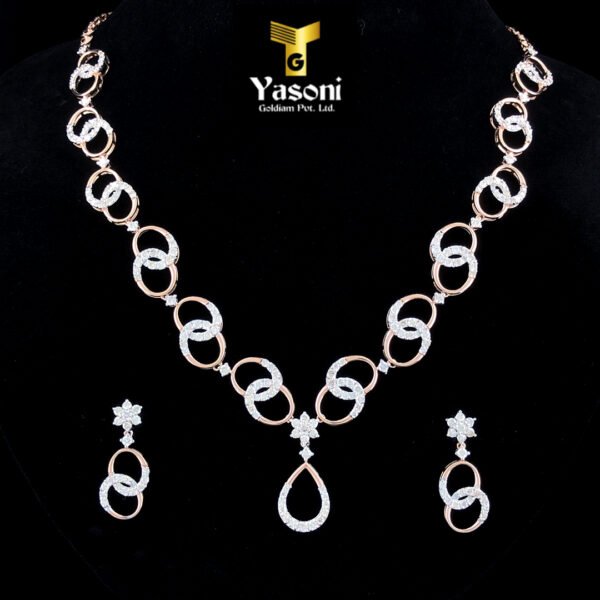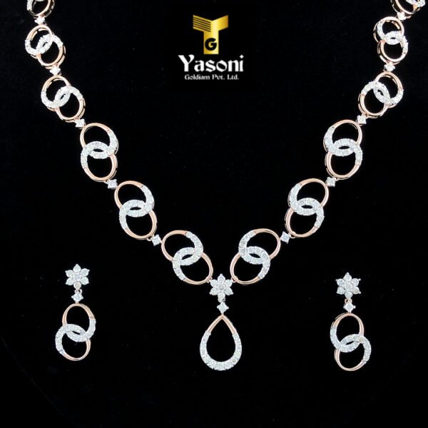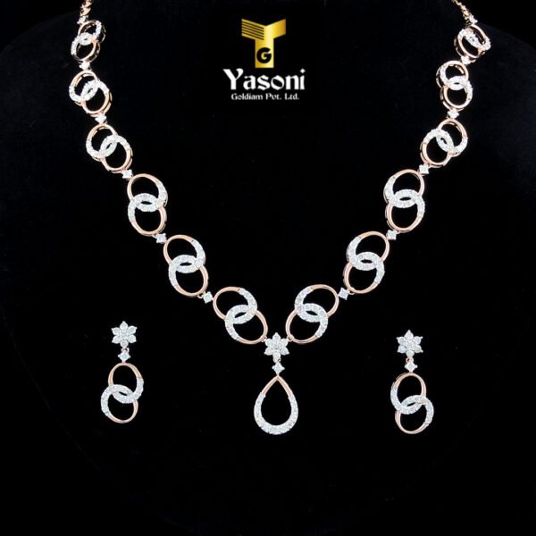 Experience the captivating brilliance of the Interlocking Oval Diamond Set, a complete ensemble featuring a diamond-intensive necklace and perfectly matched drop earrings. Designed to turn heads, this set is defined by its striking repetition of shape and breathtaking diamond sparkle.