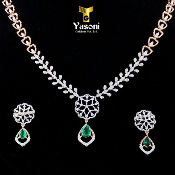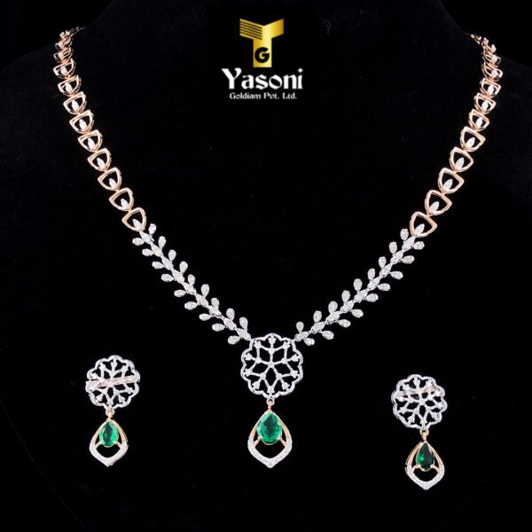 Flora Green Stone Diamonds Necklace: 💚 A captivating piece featuring vibrant green gemstones set amidst brilliant, shimmering diamonds. It evokes the fresh beauty of nature and adds a touch of classic elegance.