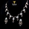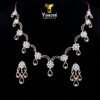Exquisite diamond-look collar necklace and earring set. Features a delicate floral vine design with cascading, brilliant drops. Timeless elegance for bridal or grand formal wear.
