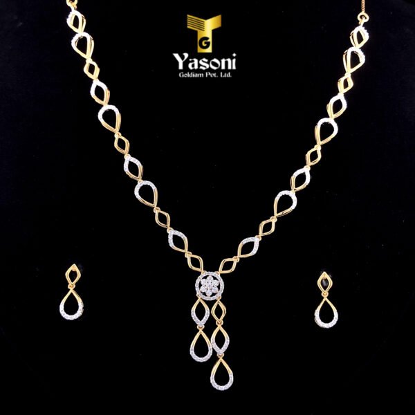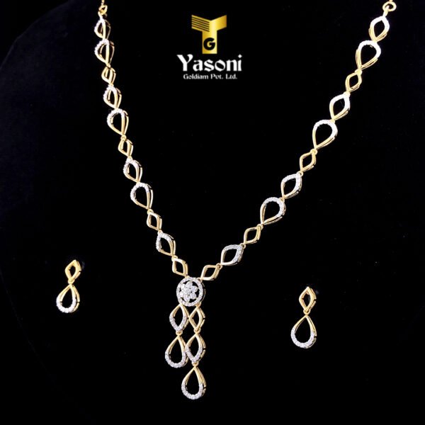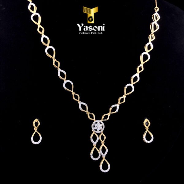 “Embrace effortless elegance with the Infinity Loop Set. This lightweight necklace and earring set features a beautiful, interwoven two-tone design, symbolizing eternal connection. Crafted with sparkling diamonds and a delicate drop pendant, it provides comfortable, day-to-night luxury that feels barely-there.”