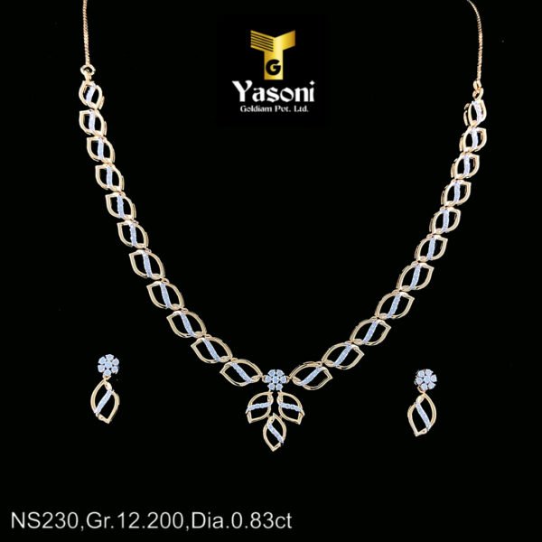 The epitome of grace, this Classic Diamond Set is a timeless masterpiece. Featuring brilliant-cut diamonds meticulously set in polished gold, it offers an unmissable sparkle with every movement. A perfect pairing of necklace and earrings, this set delivers enduring sophistication for any occasion”.