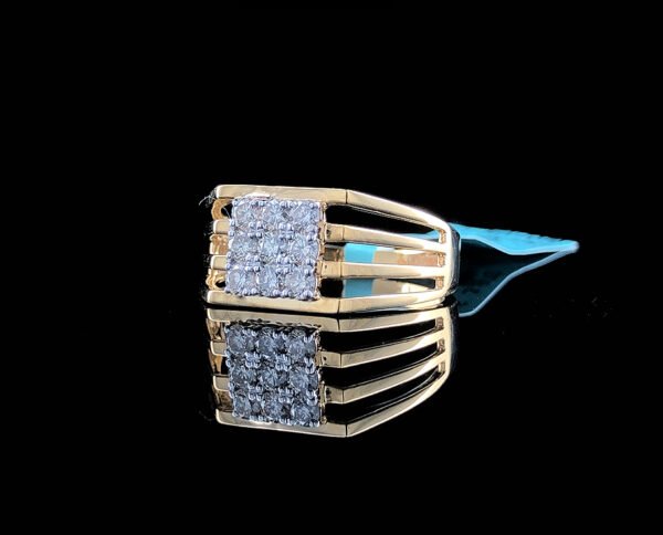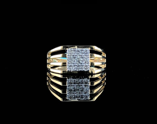 This substantial ring features a wide, robust band that commands attention and offers a weighty, masculine feel. It is set with numerous diamonds, often using a channel or pavé setting, to deliver a bold, continuous sparkle that signifies strength and luxury.
