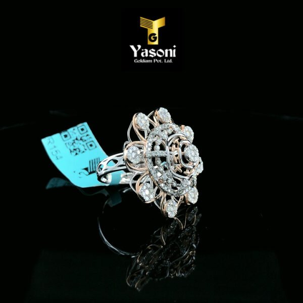 🌟Introducing the Yasoni Goldiam New Style Diamond Ring! 🌸 This stunning, ornate ring features a brilliant floral-inspired design with multiple sparkling diamonds set in intricate layers. It’s a statement piece that blends modern glamour with timeless elegance.