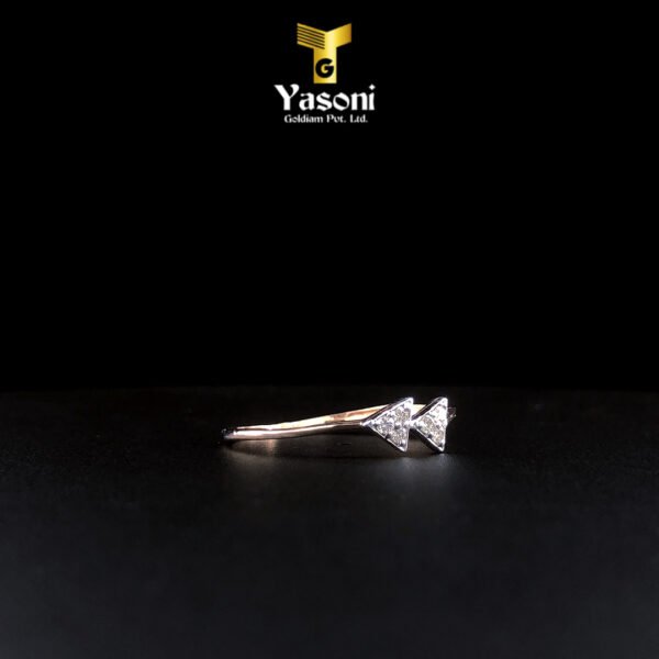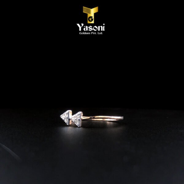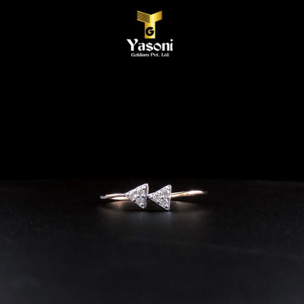 Cute diamond studded ring with triangular end pieces is crafted in 18kt rose gold for those who have an elegant taste in fashion