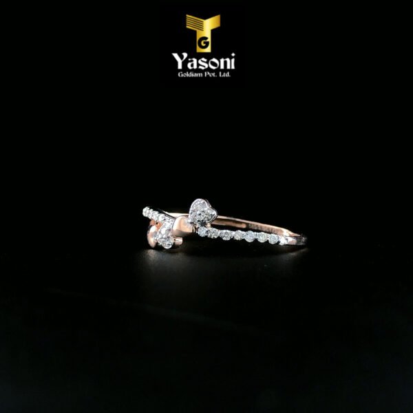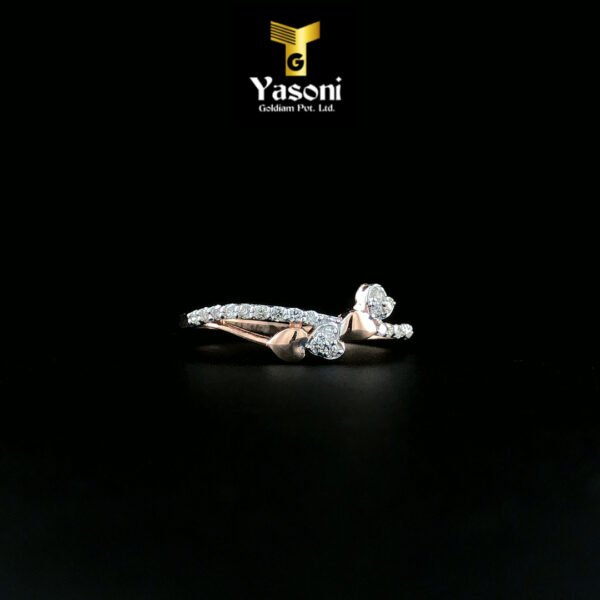 Heart pattern diamond ring is best choice for highlight in night in this ring have 4 hearts 2 of diamond and 2 of rose gold