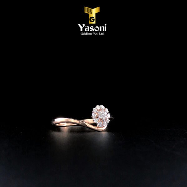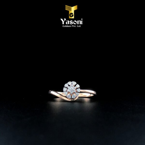 It features a cluster of small diamonds meticulously set to form a tiny, brilliant floral design. This style offers subtle elegance and high sparkle, making it a popular choice for a charming engagement or promise ring.
