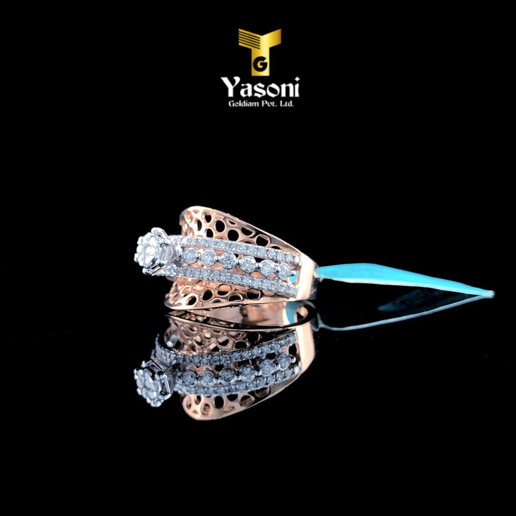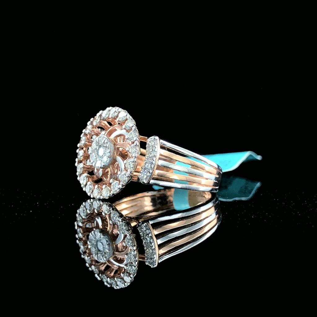 Gold and diamonds have captivated human imagination from ancient civilizations to modern times like few other materials. These precious elements have adorned the crowns of kings, symbolized eternal love, and embodied humanity’s pursuit of beauty, rarity, and enduring value. As we delve into the rich tapestry of their historical and cultural significance, we uncover the profound symbolism that has made a gold ring with diamond the ultimate expression of love, commitment, and life’s most cherished milestones.   Product Details : Gold : Rose Gold Purity : 14 KT Gross Weight:  3.460 Gm Net Weight: 3.414 Gm   IGI Certified : YES Diamond Weight: 0.23 Cts Colour : HI Clarity: SI Diamond Pcs : 09